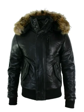 Mens Shearling Fur Parka Genuine Leather Jacket