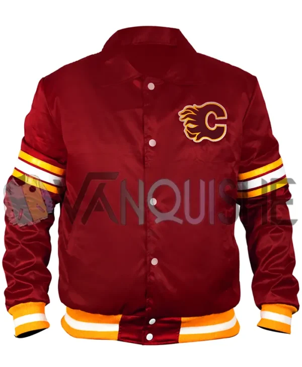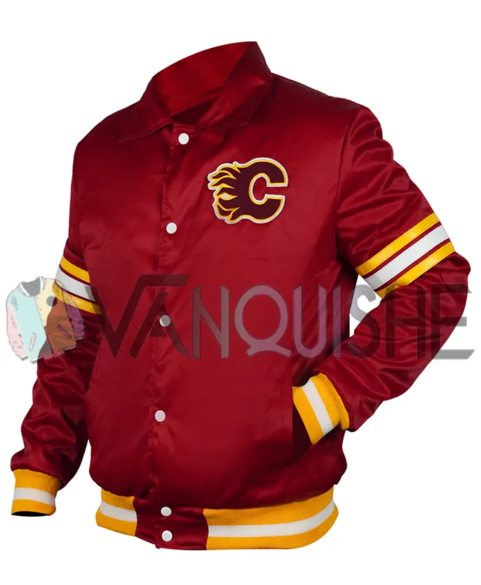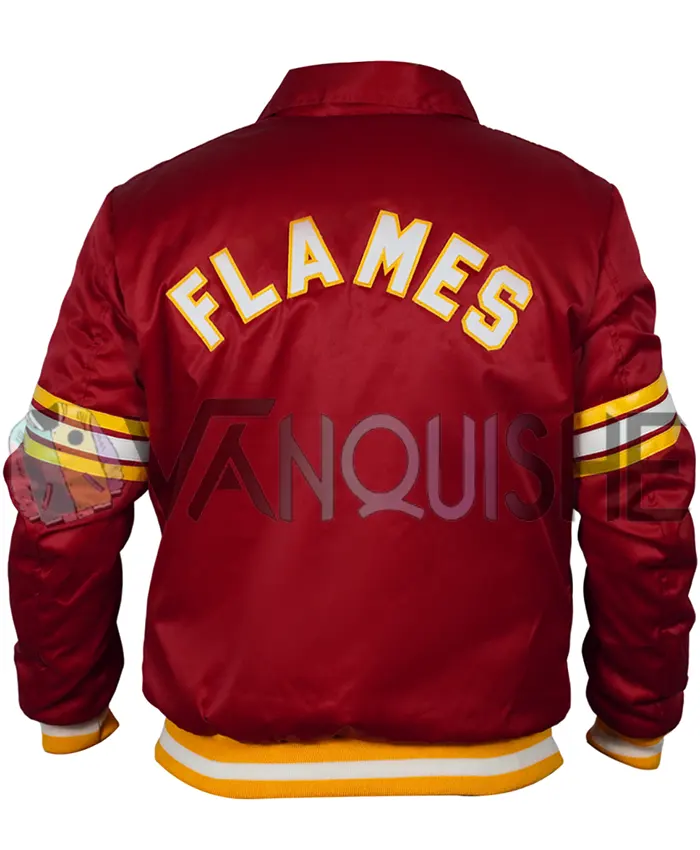 Calgary Flames 1980s Red Satin Bomber Jacket For Sale