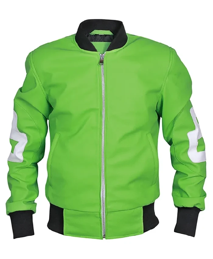 8 Ball Green Bomber Leather Varsity Jacket For Men and Women