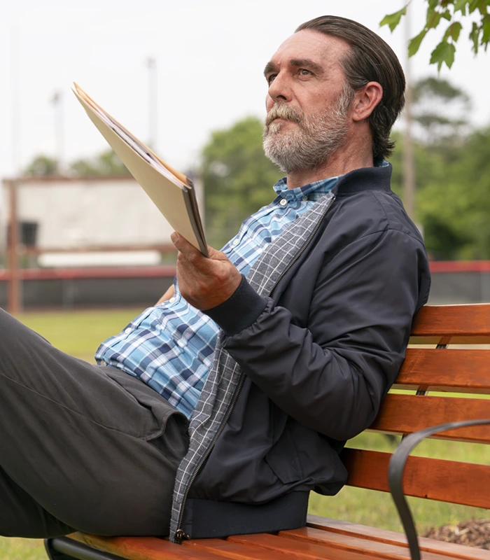 In 9-1-1: Nashville, there is a confidence and readiness to Jessejames Locorriere’s persona, which is made all the easier with this grey satin bomber jacket. It is not only daring but also very intentional, just like Jesse’s character, which thereby guarantees its daily wear and an on-screen fashion influence as well. Smooth, creative, and simply stylish—for those who want to embody the same confidence and energy as the character.