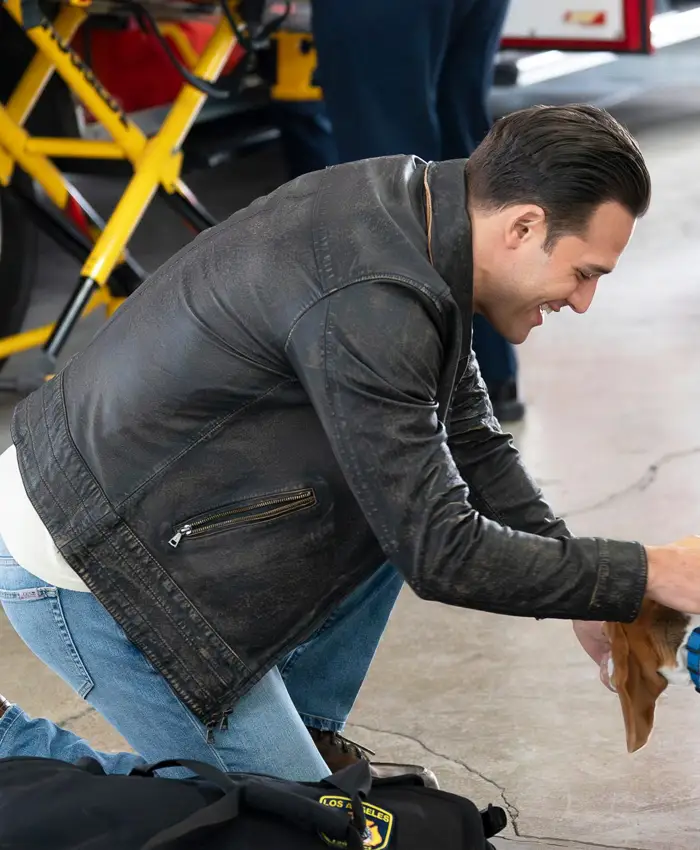Ryan Guzman TV-Series 9-1-1 2025 Eddie Diaz Black Leather Jacket