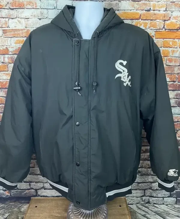 90’s Vintage Chicago White Sox Black Starter Hooded Jacket For Sale