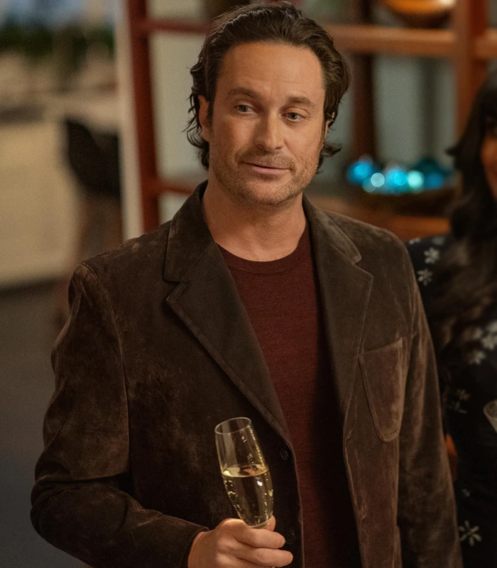 Oliver Hudson Movie A Merry Little Ex-Mas 2025 Brown Velvet Blazer