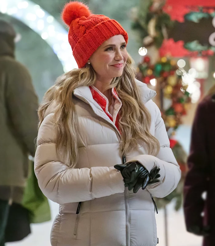 Fiona Gubelmann Movie A Royal Montana Christmas 2025 Princess Victoria of Zelarnia White Puffer Coat