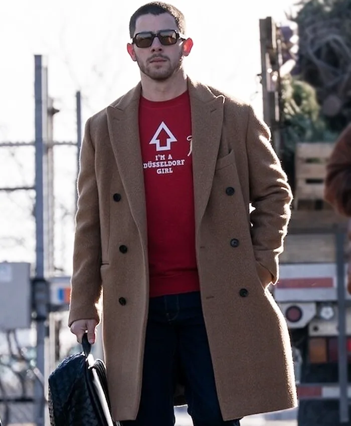 Nick Jonas A Very Jonas Christmas Movie 2025 Brown Wool Coat