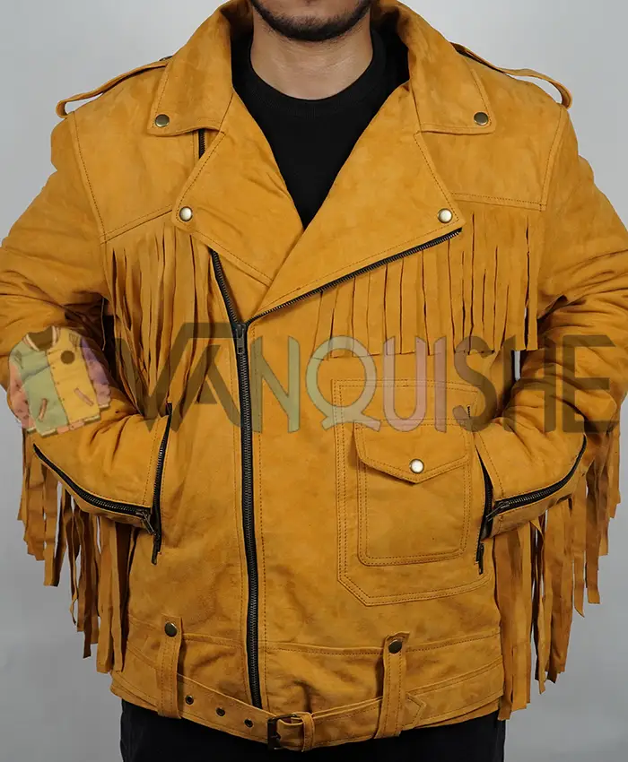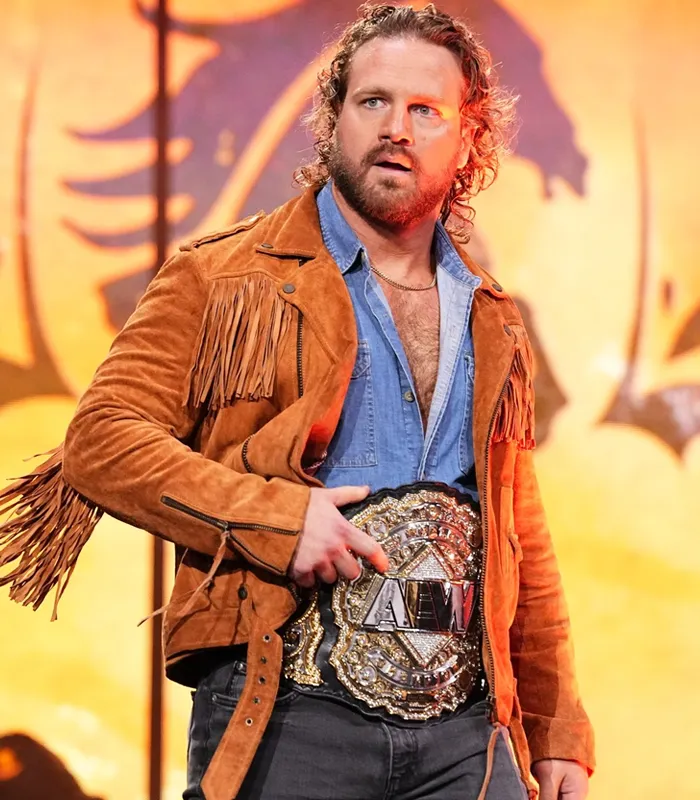 This jacket? Adam Page, wow, he exudes such easygoing confidence. It’s kind of the same vibe. Made for people who want to stand out without trying too hard. It’s a bit rough and a bit stylish. The Brown Fringe Suede Jacket has that “effortlessly cool” vibe down pat.