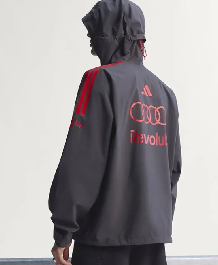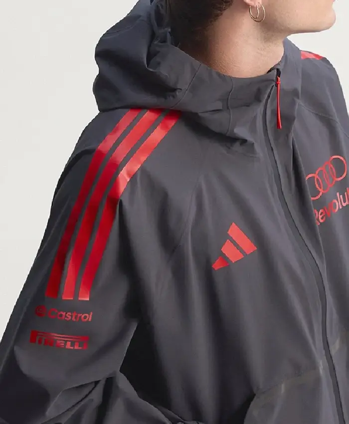 Adidas Audi Revolut F1 Team Mechanics Hooded Zip-Up Black Rain Jacket For Men and Women