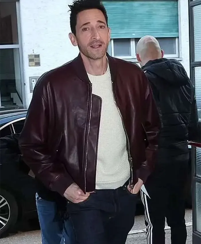 Shop the Premium Maroon Leather Bomber Jacket Worn by Adrien Brody