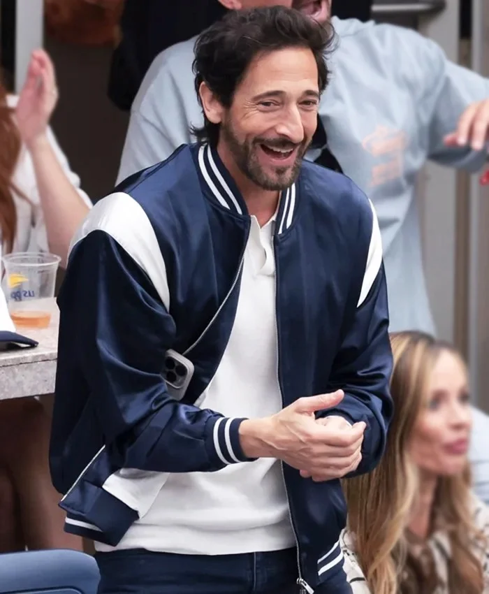 US Open Tennis Championships 2025 Adrien Brody Blue Bomber Jacket