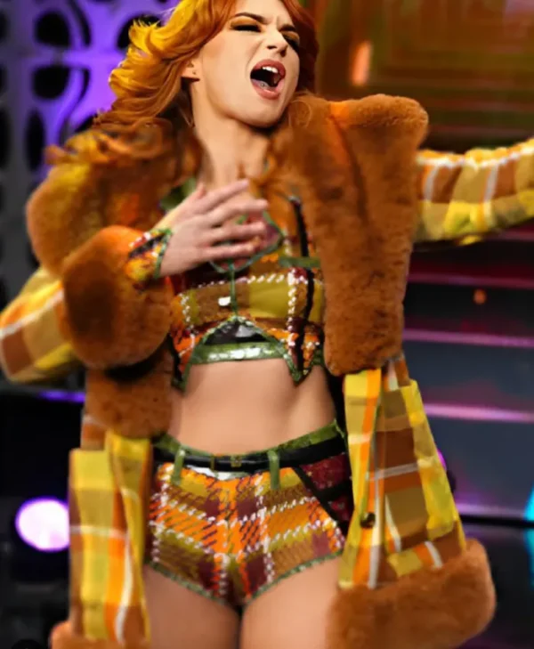 Be the first to review “AEW Dynamite 2025 Paige Wooding Plaid Fur Coat” Cancel reply