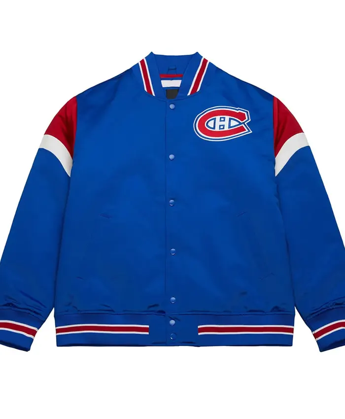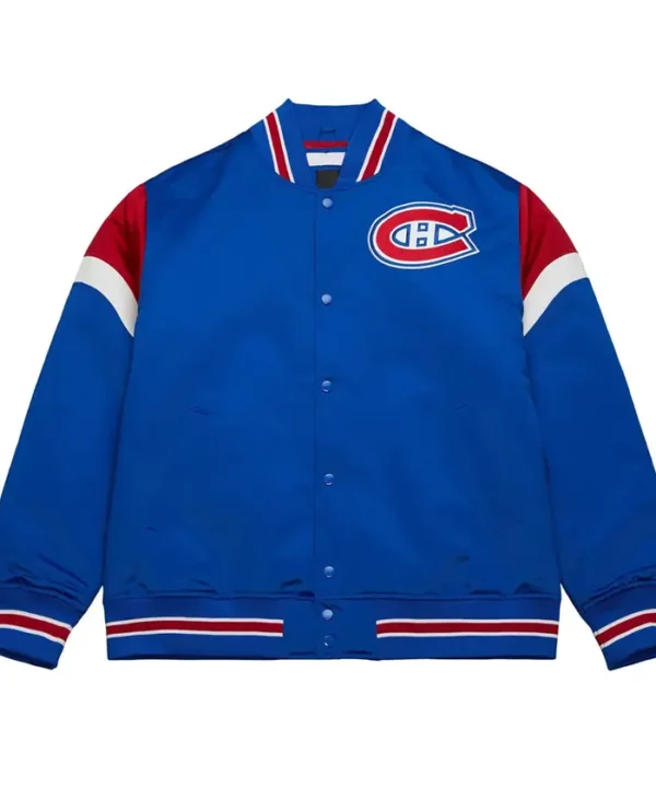 Aileen Montreal Canadiens Heavyweight Royal Satin Varsity Jacket For Men