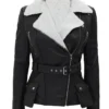 Alex Black Shearling Leather Biker Belted Jacket For Men