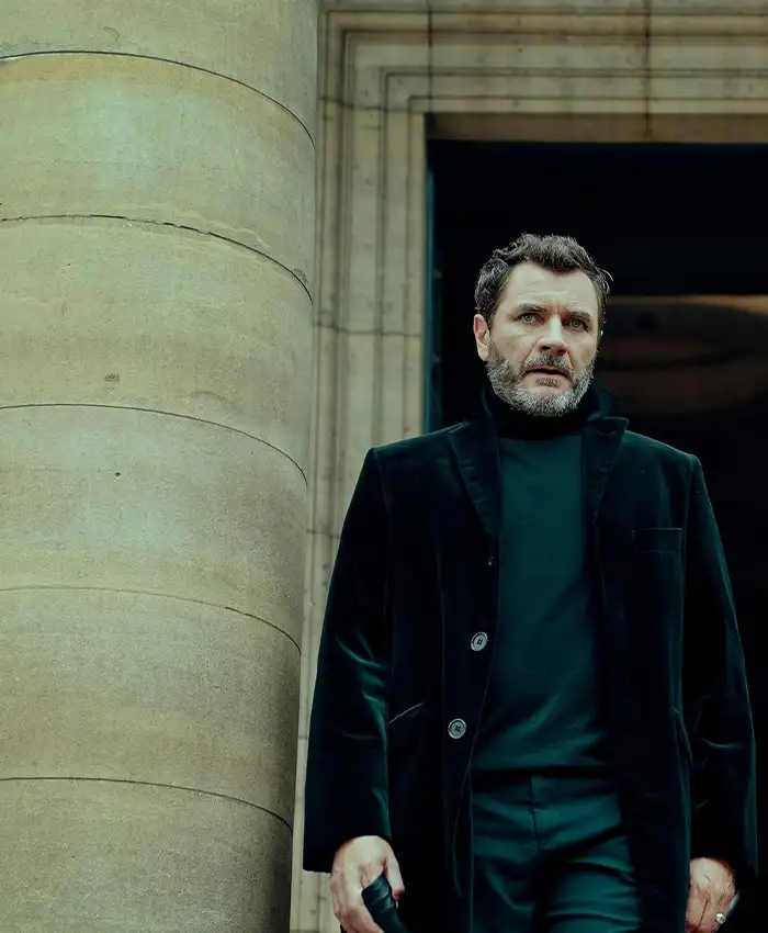 Parques Furies Season 01 TV Series 2024 Alex Brendemühl Black Velvet Coat
