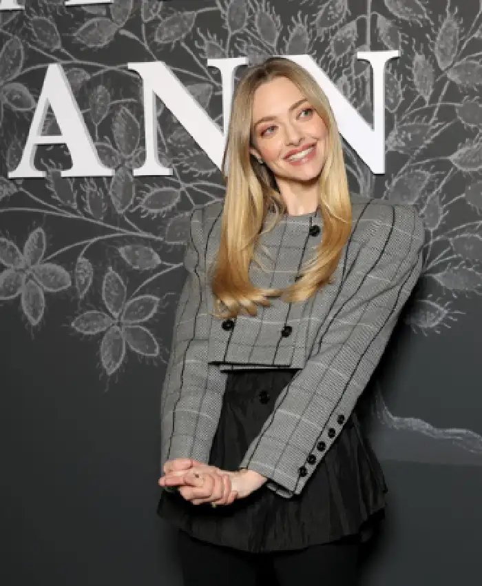 Amanda Seyfried French premiere 2026 The Testament of Ann Lee Grey Wool Checked Cropped Jacket For Women