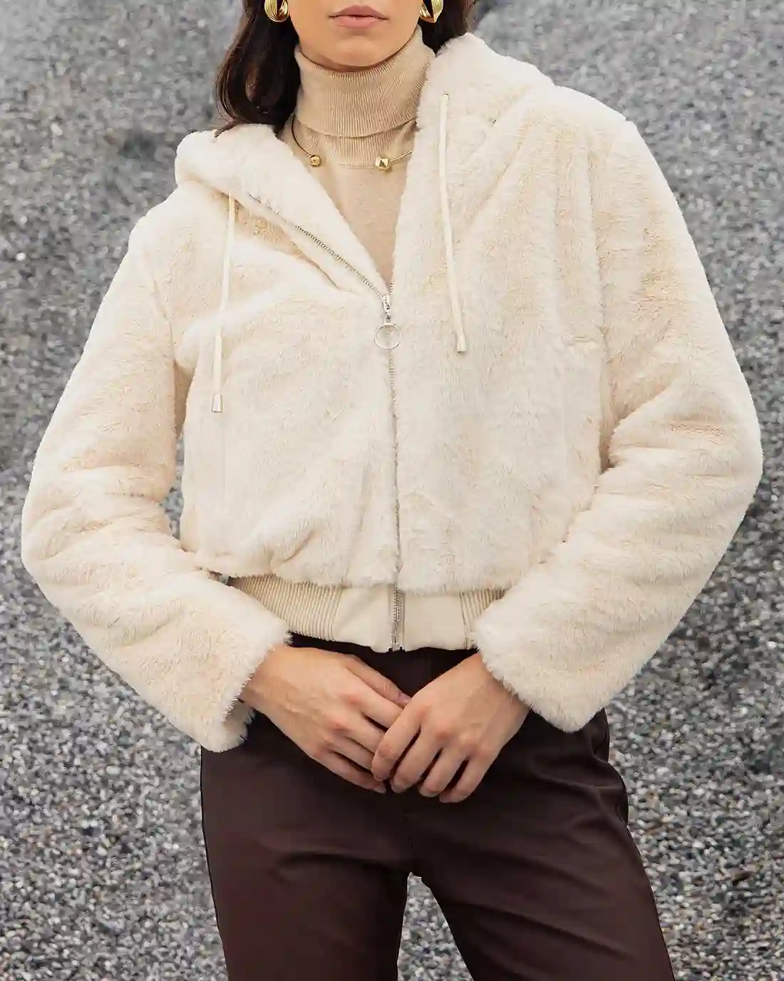 Amanda White Zipper Hooded Fur Jacket For Women On Sale