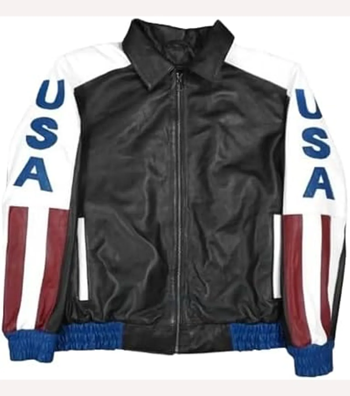 Shop American Flag Vintage Leather Zipper Jacket on Sale