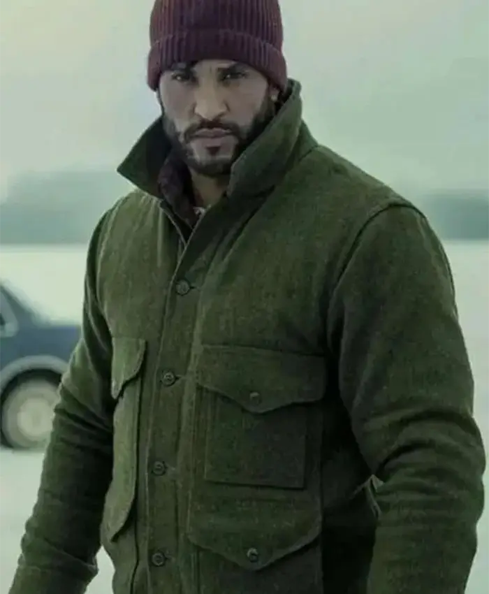 With notes of mystery, resilience and a silent strength, this green wool jacket channels the same magnetic energy as Shadow Moon’s character in American Gods. Worn by Ricky Whittle, this jacket represents Shadow’s strength and quiet confidence as a man caught between realms, struggling to come to terms with the truth of his own foundation, yet oddly serene. Not just a simple winter staple, but more than that, it embodies a character and depth for the charming men and for those individuals who want simplicity and defined purpose in their attire.