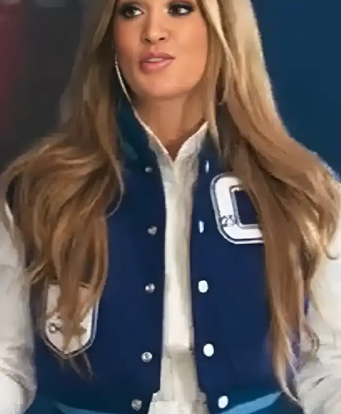 Carrie Underwood American Idol S24 2026 Blue and White Wool Varsity Jacket Sale For Men and Women
