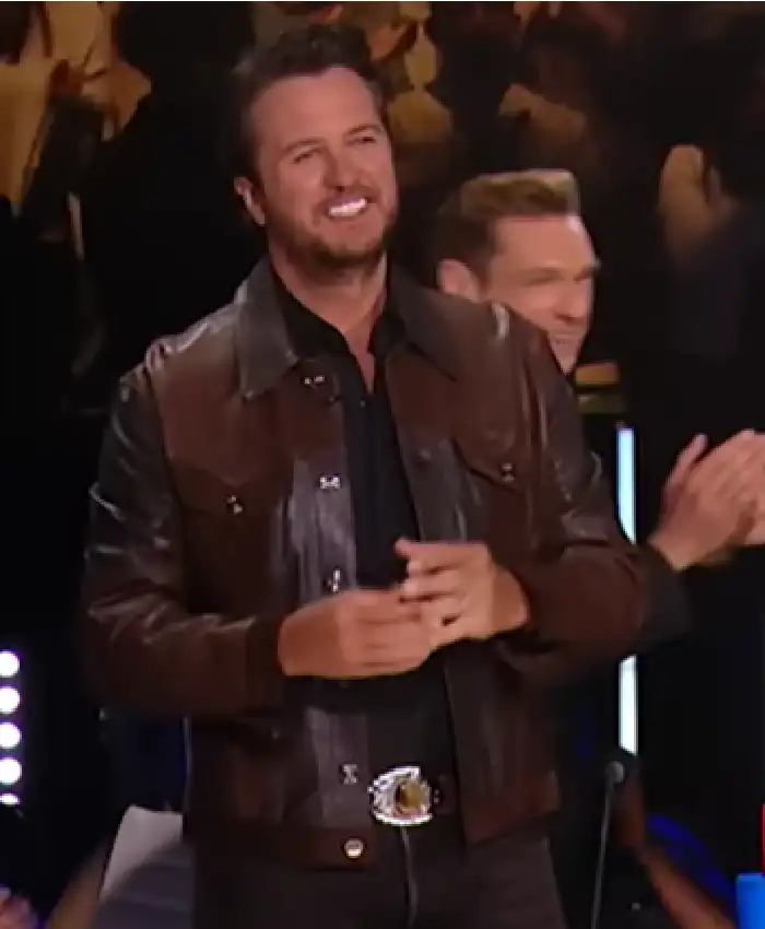 Judge Luke Bryan American Idol 2026 Dark Brown Trucker Leather Jacket For Men
