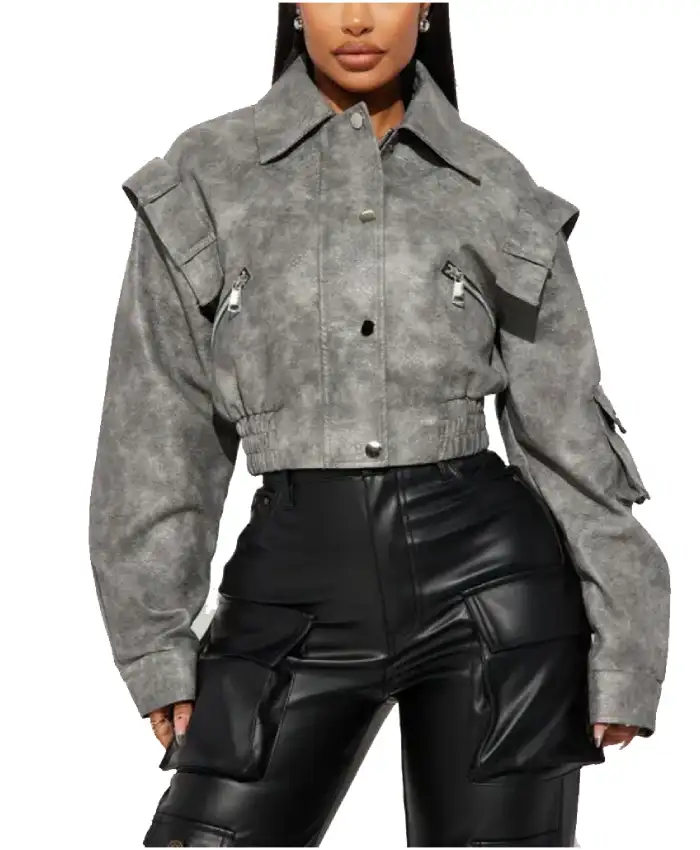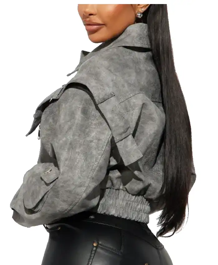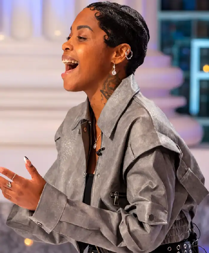 Keyla Richardson American Idol S24 Grey Leather Jacket On Sale For Women