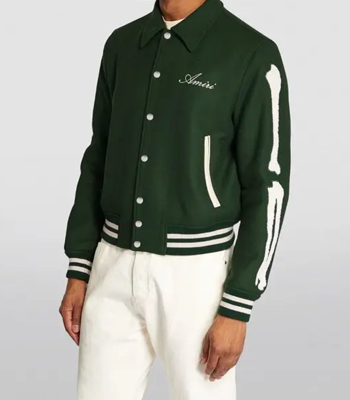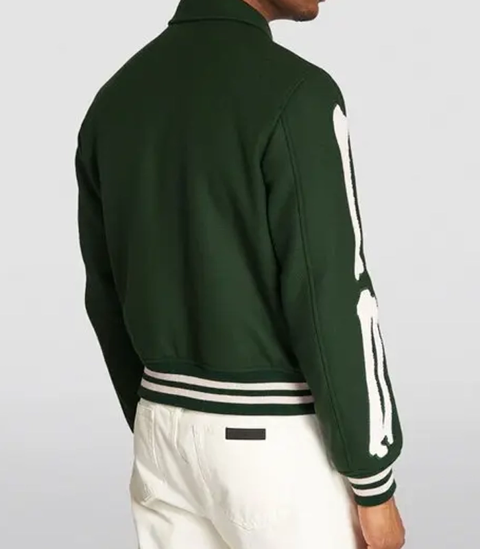Shop Amiri Bones Green Varsity Wool Jacket For Men’s and Women’s