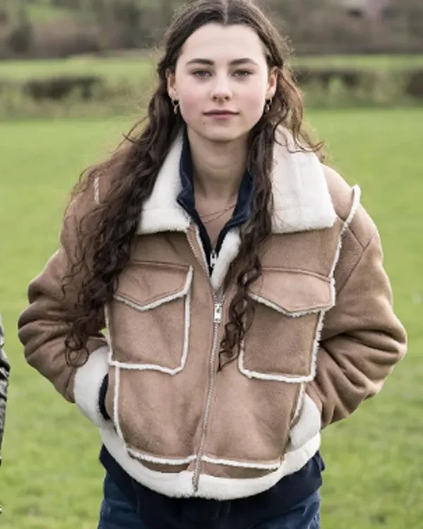 Beau Gadsdon Tv Series Ellis Amy Mercer Brown Leather Shearling Jacket