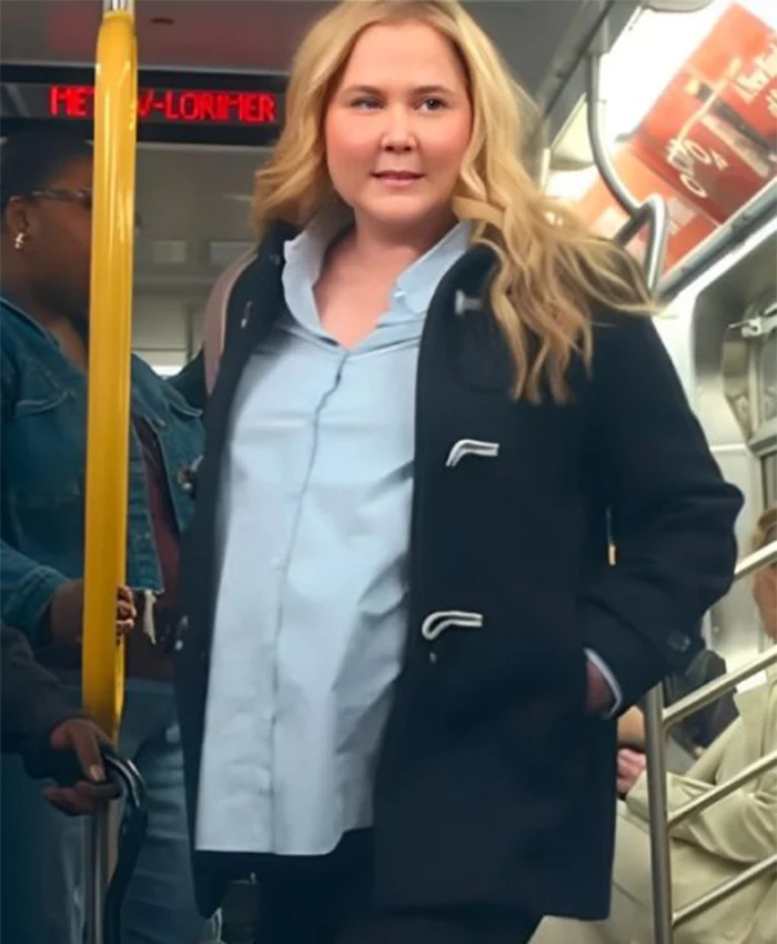 Lainy Newton Movie Kinda Pregnant 2025 Amy Schumer Black Duffle Coat