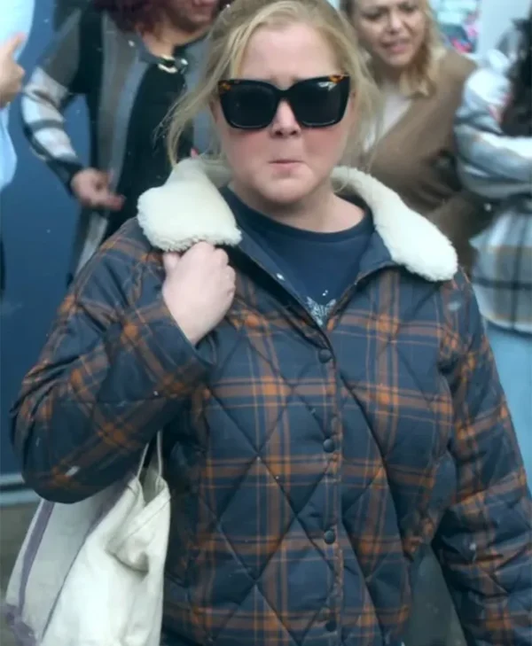 Lainy Newton Movie Kinda Pregnant 2025 Amy Schumer Shearling Plaid Quilted Jacket