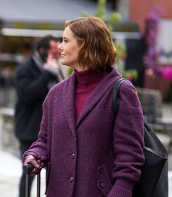 Ashley Williams Movie An Alpine Holiday 2025 Faith Purple Wool Coat