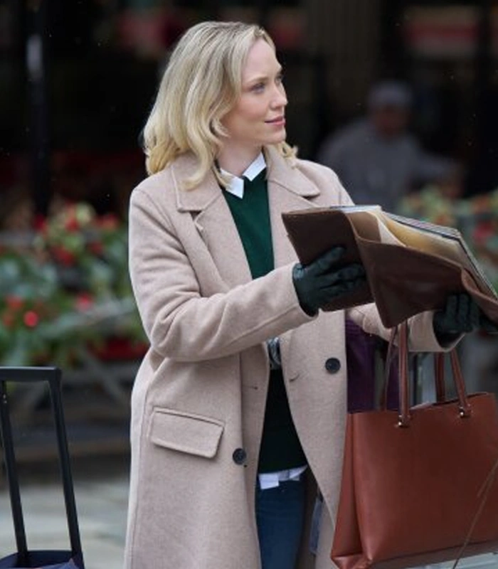 Laci J Mailey Movie An Alpine Holiday 2025 Kelly Grey Wool Trench Coat
