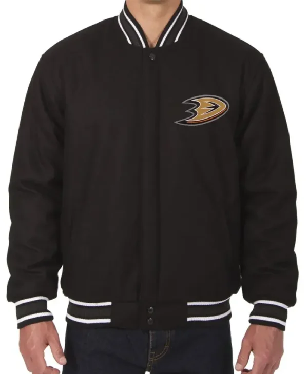 Anaheim Ducks Black Wool Full Snap Varsity Jacket For Men and Women