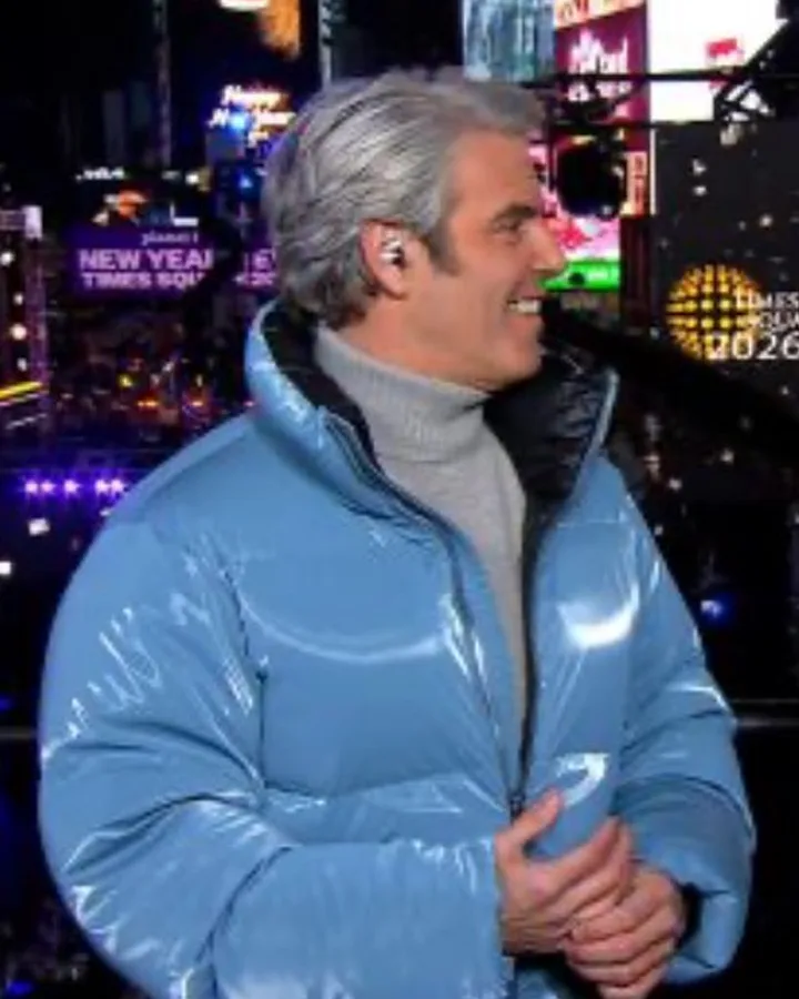Shop New Year’s Eve 2026 Andy Cohen Baby Blue Puffer Jacket for Men and Women