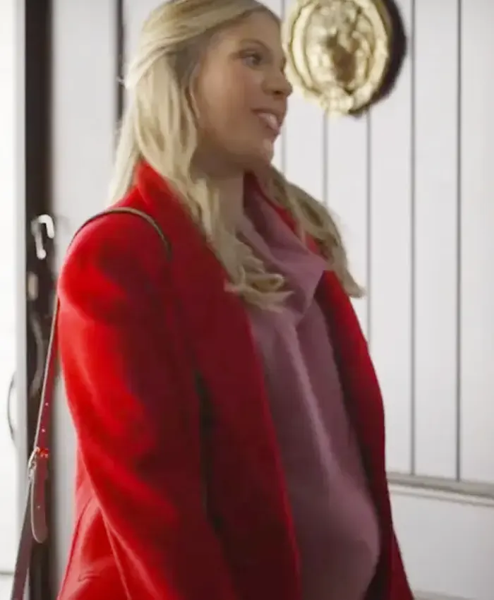 Angela Wright My Husband’s Baby 2024 Samantha Brown Red Wool Coat