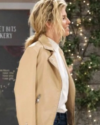 Catherina Greene TV Series Days Of Our Lives 2024 AnnaLynne McCord Beige PU Leather Jacket