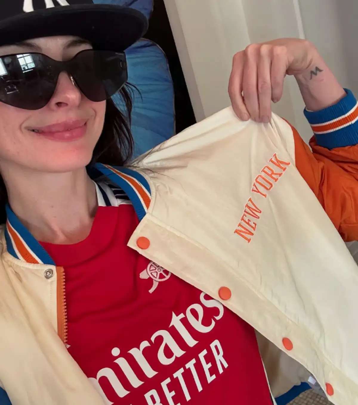 Shop Anne Hathaway New York Knicks Varsity Jacket for Men and Women