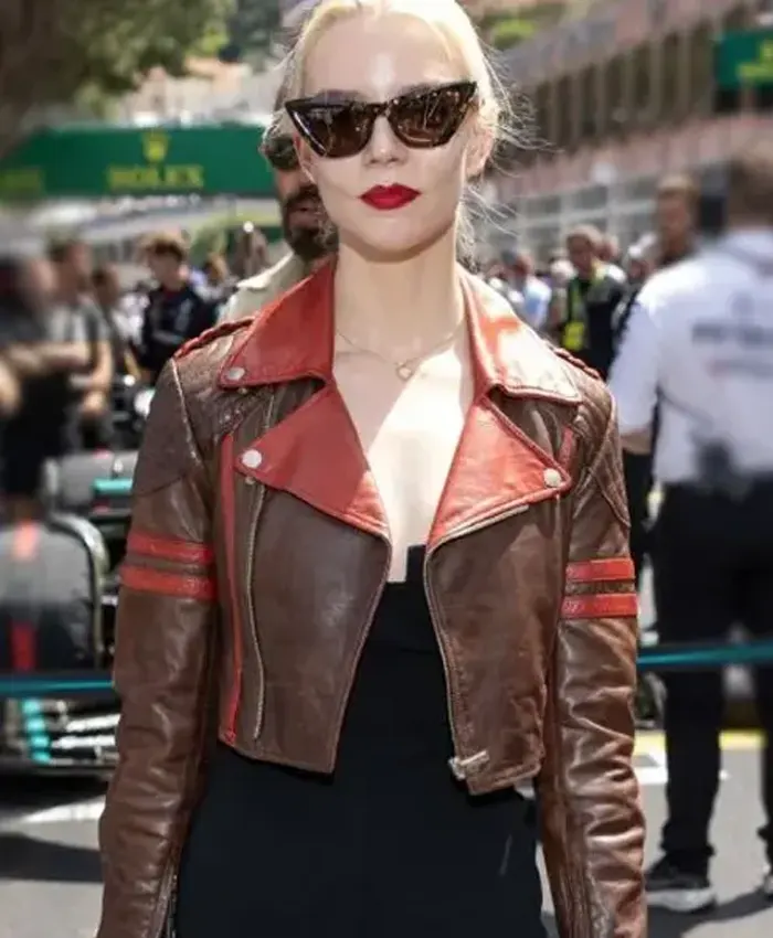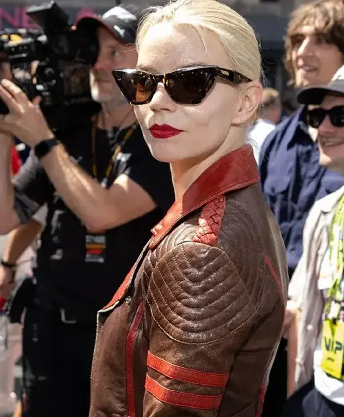 Anya Taylor Joy F1 GP Monaco Brown Leather Jacket For Women