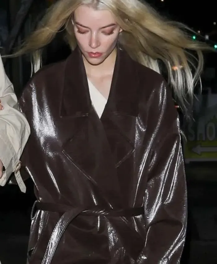Anya Taylor-Joy Celebrity 2025 LA Brown Leather Coat For Women’s
