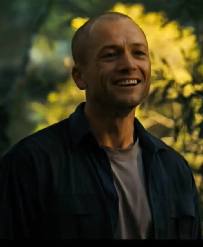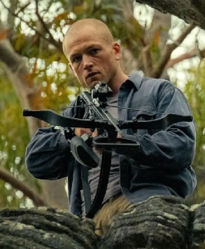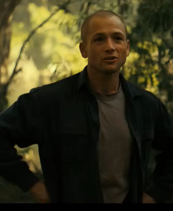Taron Egerton Movie Apex 2026 le braconnier Blue Cotton Jacket On Sale For Men