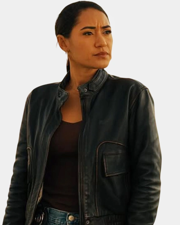 Joséphine Jobert TV Series Saint-Pierre 2025 Arch Black Leather Jacket For Women
