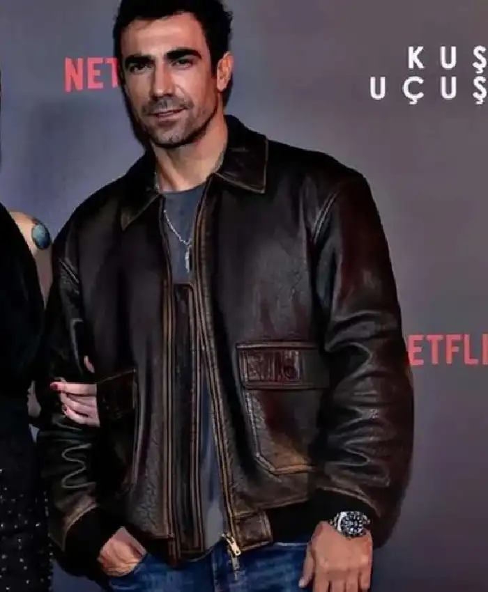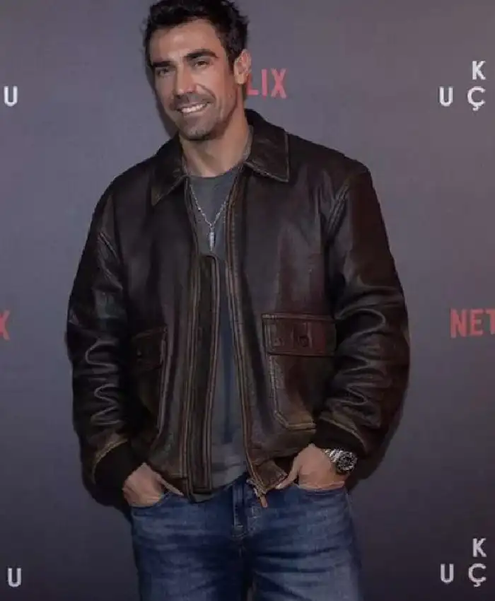 Kenan Sezgin As the Crow Flies Movie Premiere Ibrahim Celikkol Brown Leather Jacket