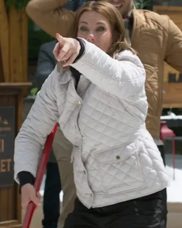 Avery Movie Jingle Bell Run 2024 Ashley Williams White Puffer Quilted Jacket