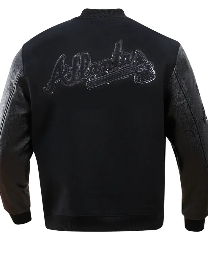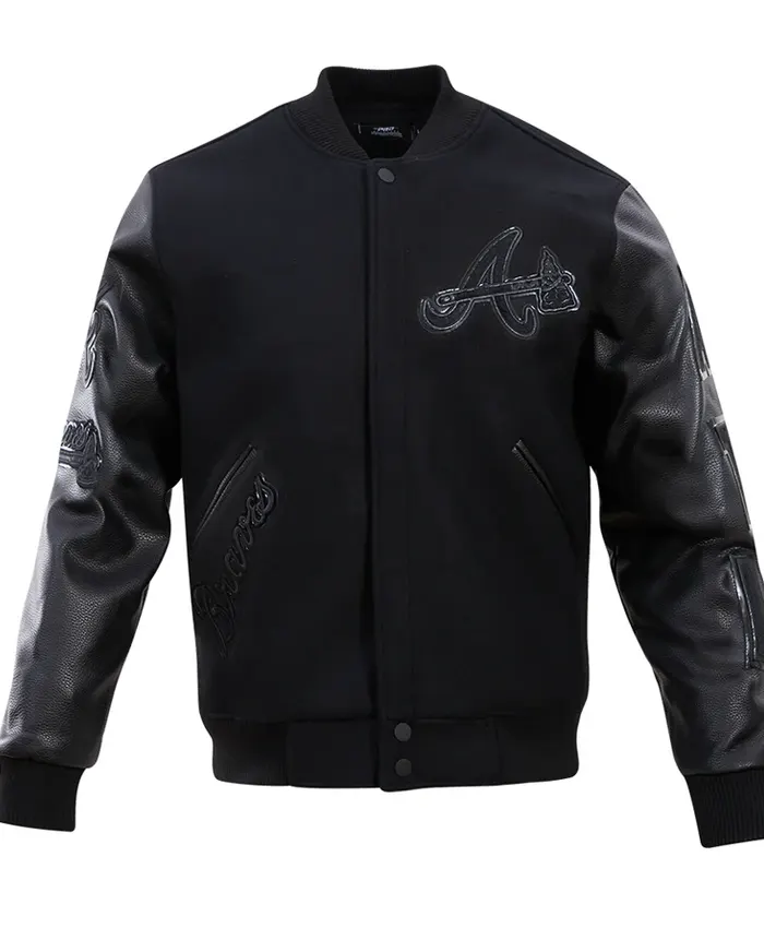 Atlanta Braves Black Wool Full Snap Varsity Jacket For Men