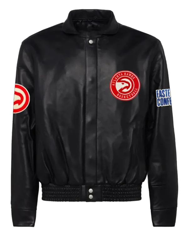 Atlanta Hawks Black Leather Bomber Jacket on sale For Mens and Womens