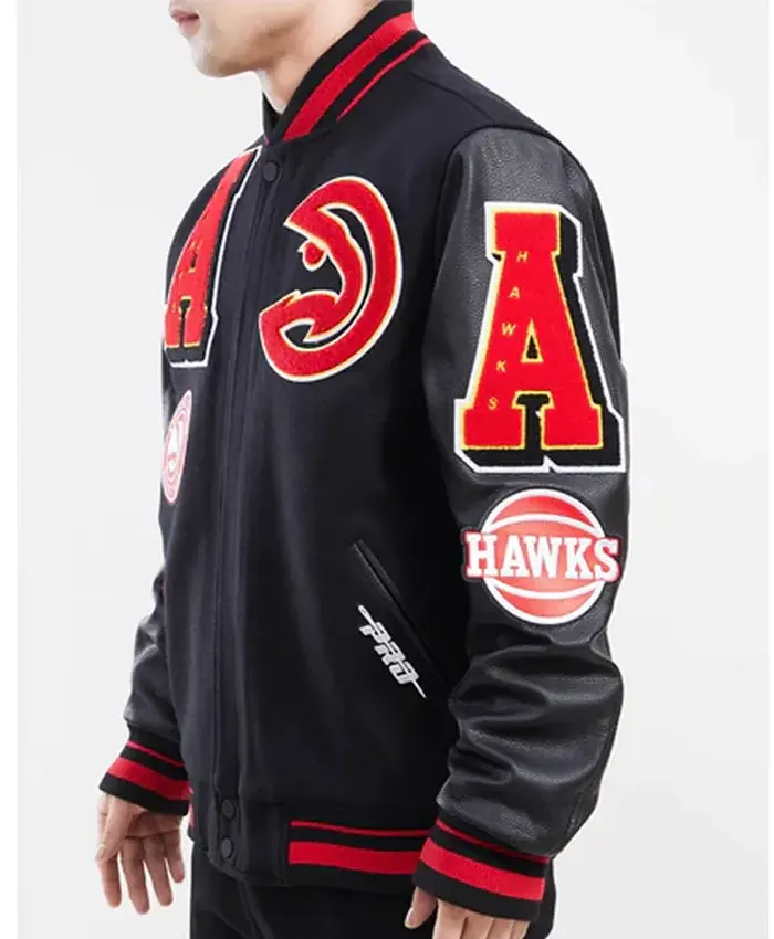 Atlanta Hawks Letterman Full Snap Wool Jacket on sale For Mens and Womens