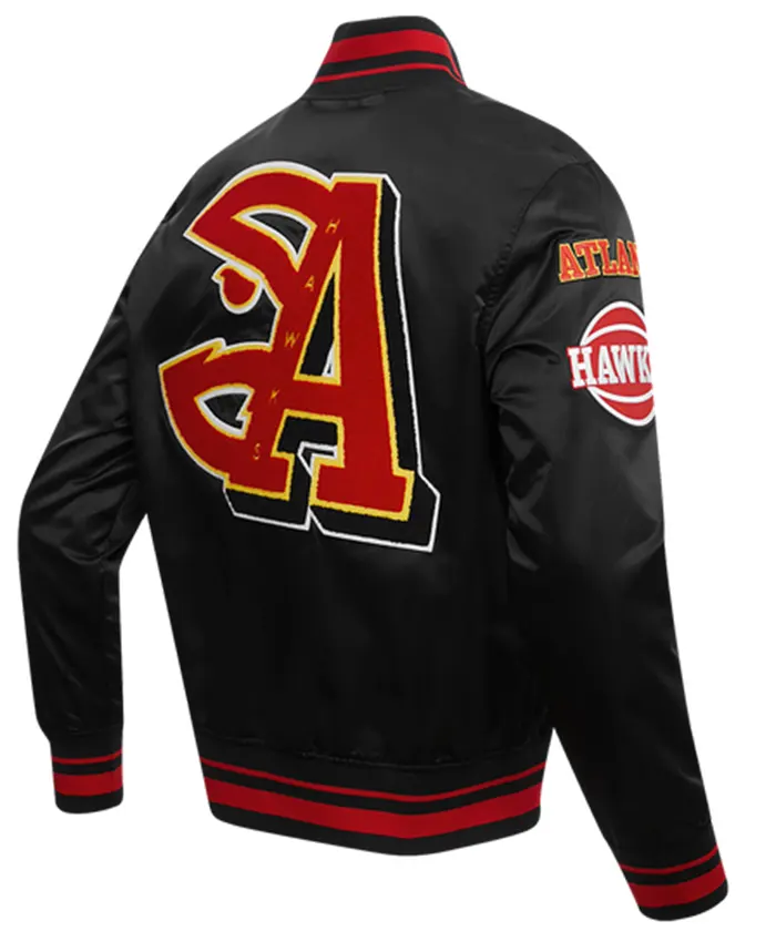 Atlanta Hawks Satin Black And Red Bomber Jacket For Mens and Womens on Sale