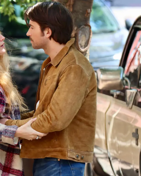 Brandon Sklenar It Ends With Us 2024 Movie Atlas Corrigan Brown Suede Leather Jacket