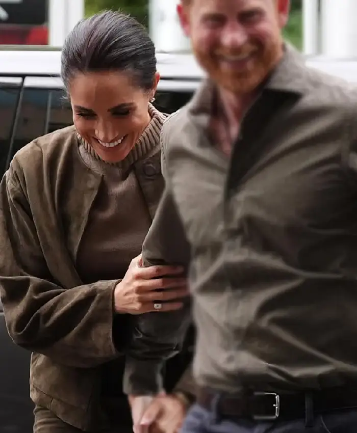 Buy Markle Meghan Australia Visit 2026 Green Suede Leather Jacket For Women