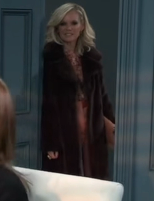 Maura West TV Series General Hospital 2024 Ava Jerome Maroon Trench Coat