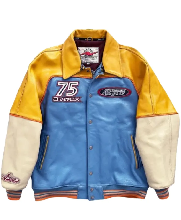 Avirex 75 New York City Long Varsity Island Leather Jacket For Men and Women
