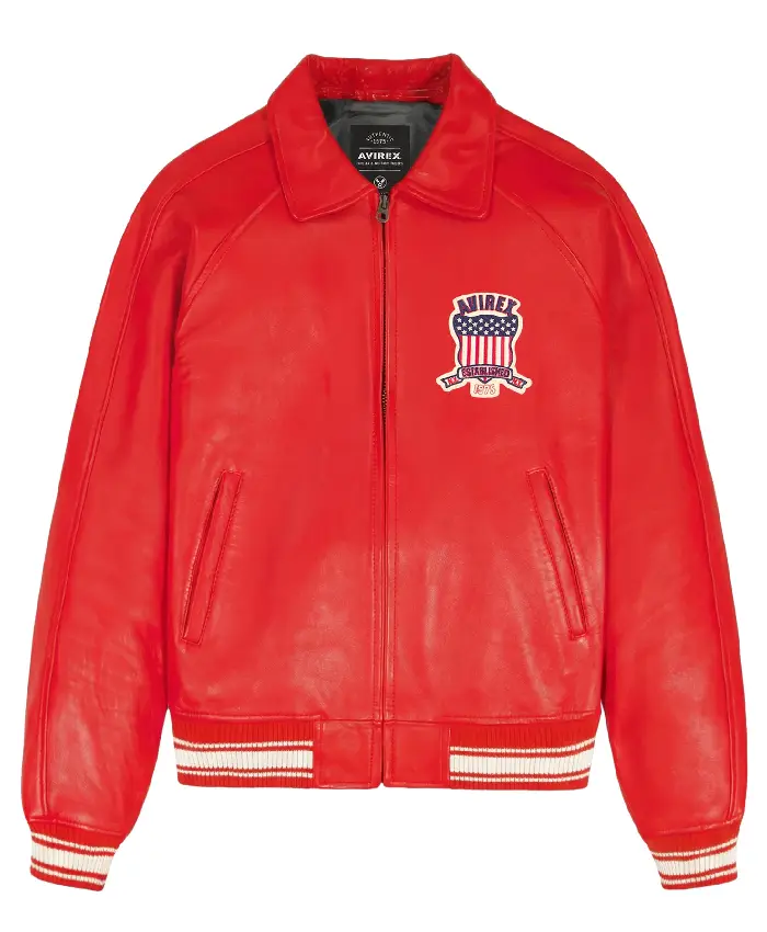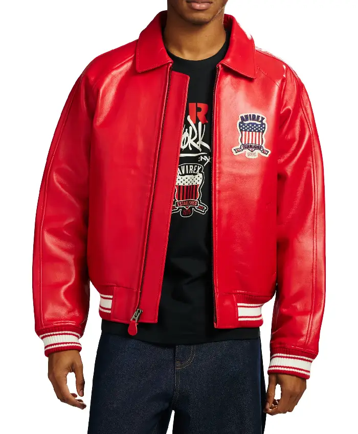 Avirex Icon Red Bomber Leather Jacket For Men and Women